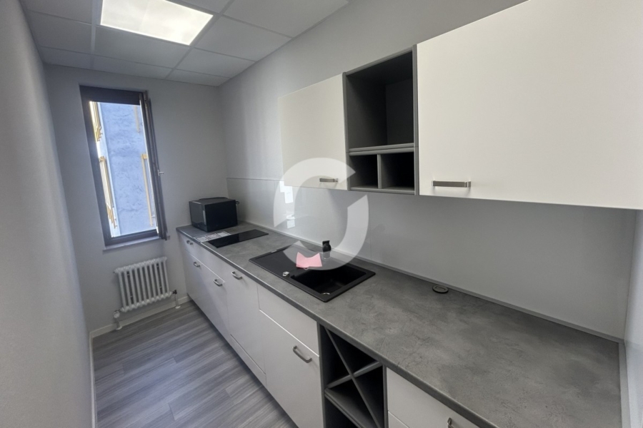 Pro Geschoss lassen sich bis zu ca. 7 Büroräume darstellen. Im Kern der Einheiten sind derzeit ein Wartebereich vorhanden, sowie eine Nische für Drucker und Ablage und die Sanitärräume. Die Sanitärräume sind hell gefliest und in ausreichender Anzahl vorhanden.
