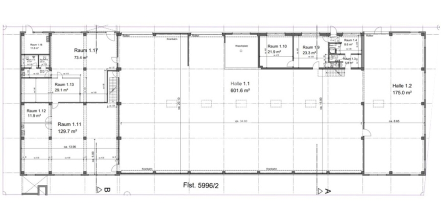 - Hallenhöhe ca. 6,30 m (Unterkante Binder)